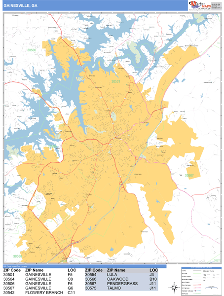 Gainesville, GA Wall Map Basic MarketMAPS DaVinciBG