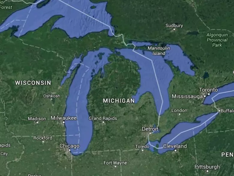 Google map of the state of Michigan and surrounding states in the